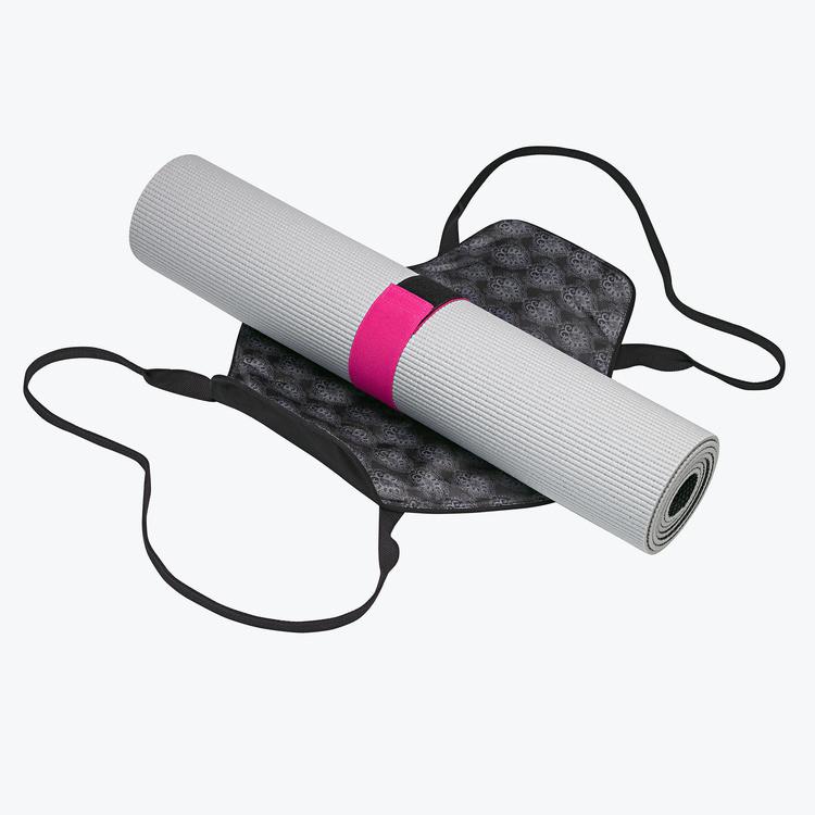 Carry your mat with ease. This bag features two thin shoulder straps, an exterior expandable zipper pocket, and room to fit most mat sizes.
